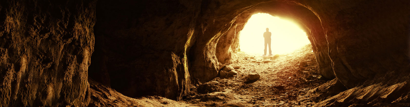 Un grupo de hombres vive dentro de una caverna, pasan su vida encadenados, sentados frente a una de las paredes viendo las sombras que proyectan los objetos del exterior. Como nunca han salido al mundo, toman las sombras como la realidad, ya que es lo único que conocen. Un cierto día, uno de los hombres logra desatarse y salir de la cueva.